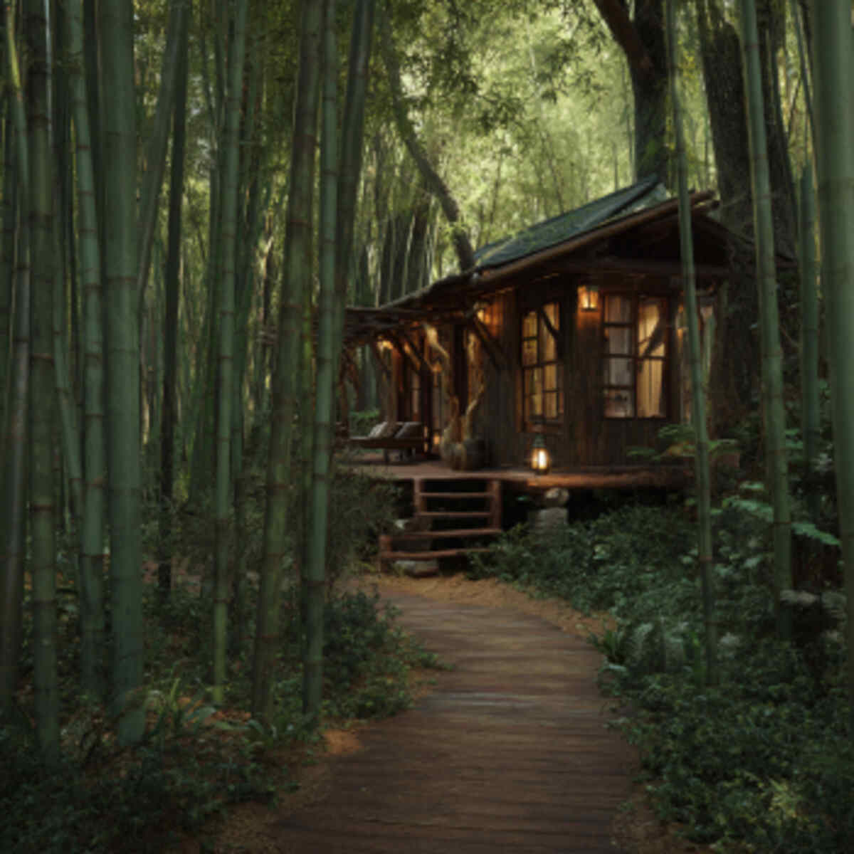 A small bamboo grove adds a gentle rustling sound and serene atmosphere to your journaling spot.
