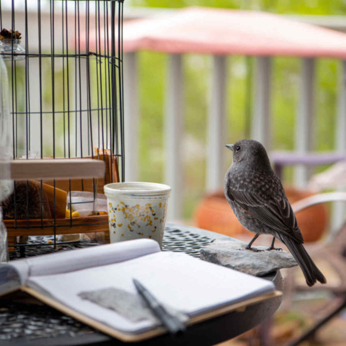 Placing a chair or bench near bird feeders makes an excellent journaling corner for observing wildlife.