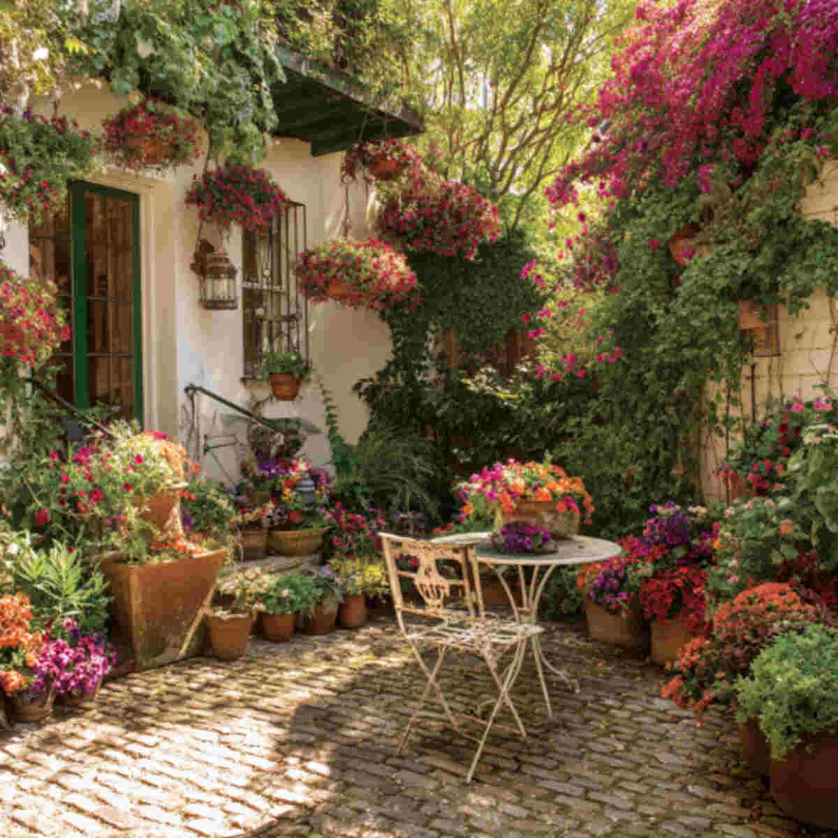 A corner of the patio filled with blooming flowers provides inspiration through colors and scents. Journaling here helps you observe seasonal changes and plant growth.