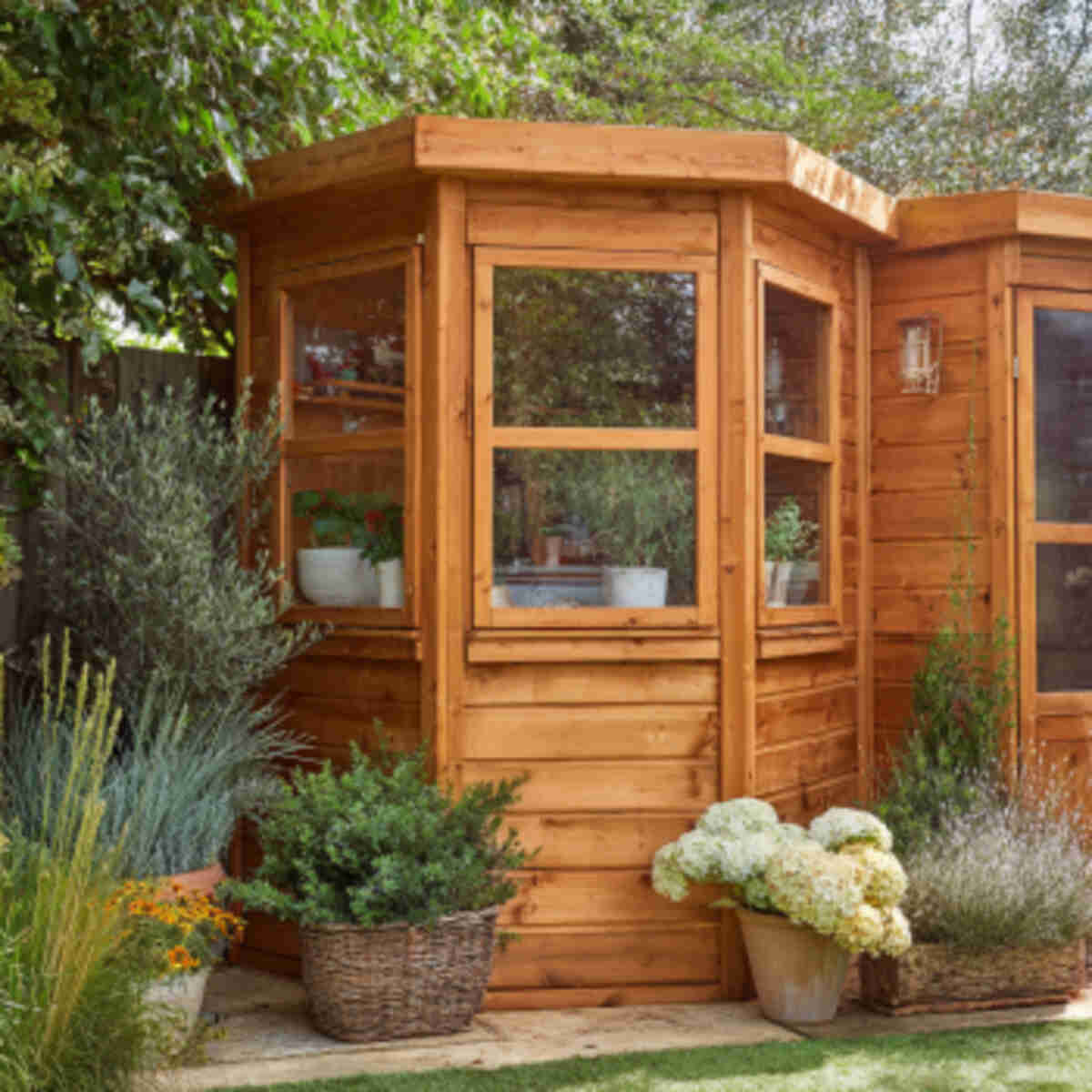 A small garden shed corner with natural light streaming through windows makes for a private journaling nook.