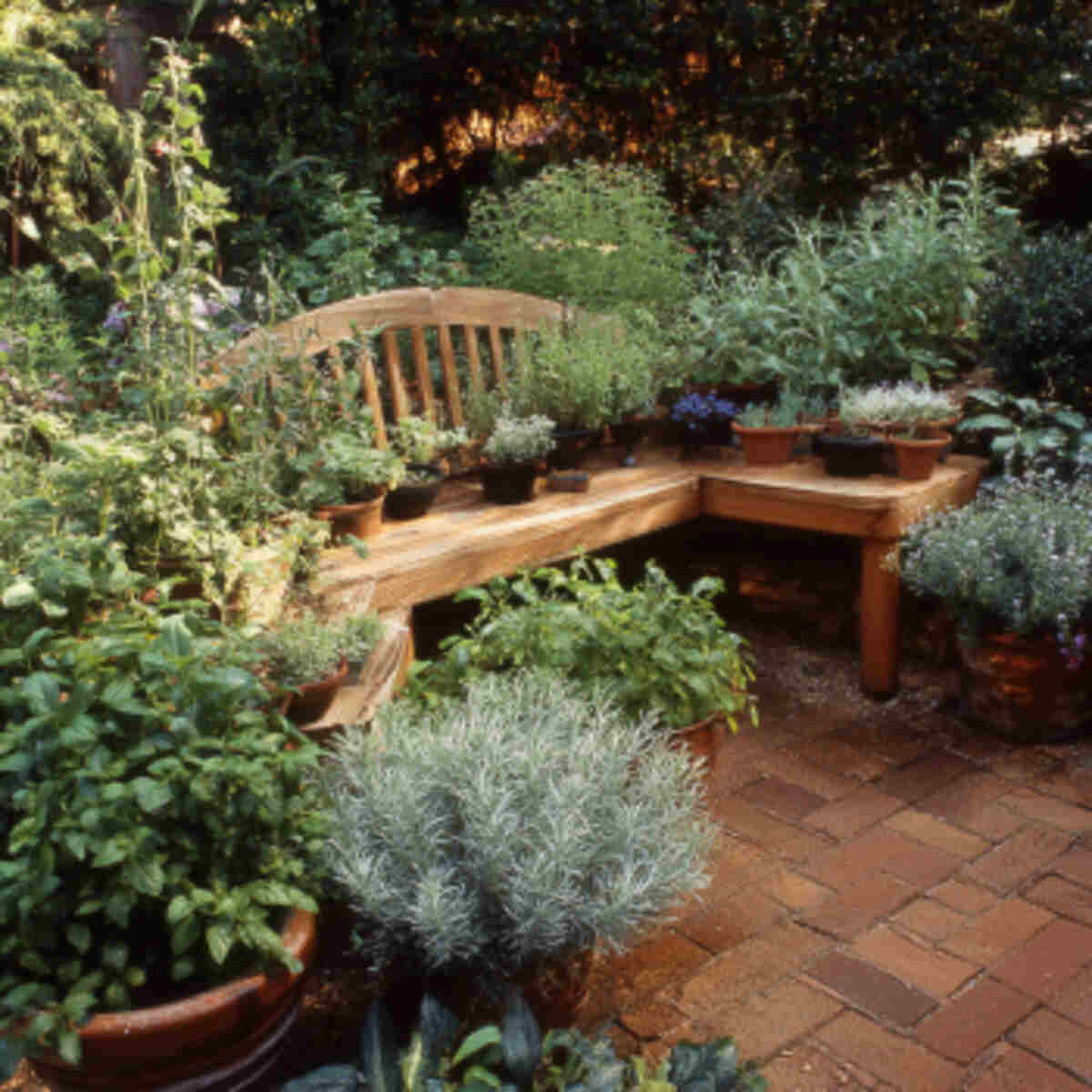 A bench in the middle of an herb garden combines aromatherapy with journaling, engaging multiple senses.