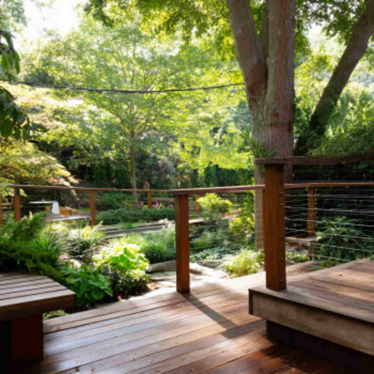 A raised deck offers a higher vantage point for journaling while observing your backyard. You can watch birds, plants, and garden activity from a comfortable space.