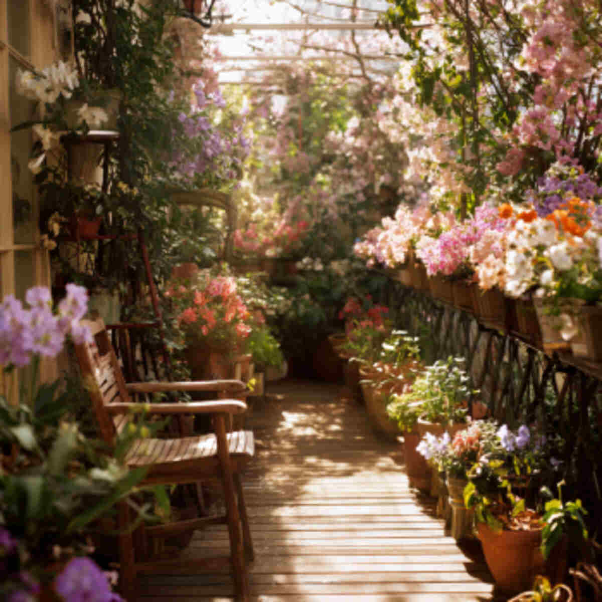 A terrace with flowers basking in sunlight creates an energizing journaling spot. Morning or afternoon sun enhances mood and inspires creativity.