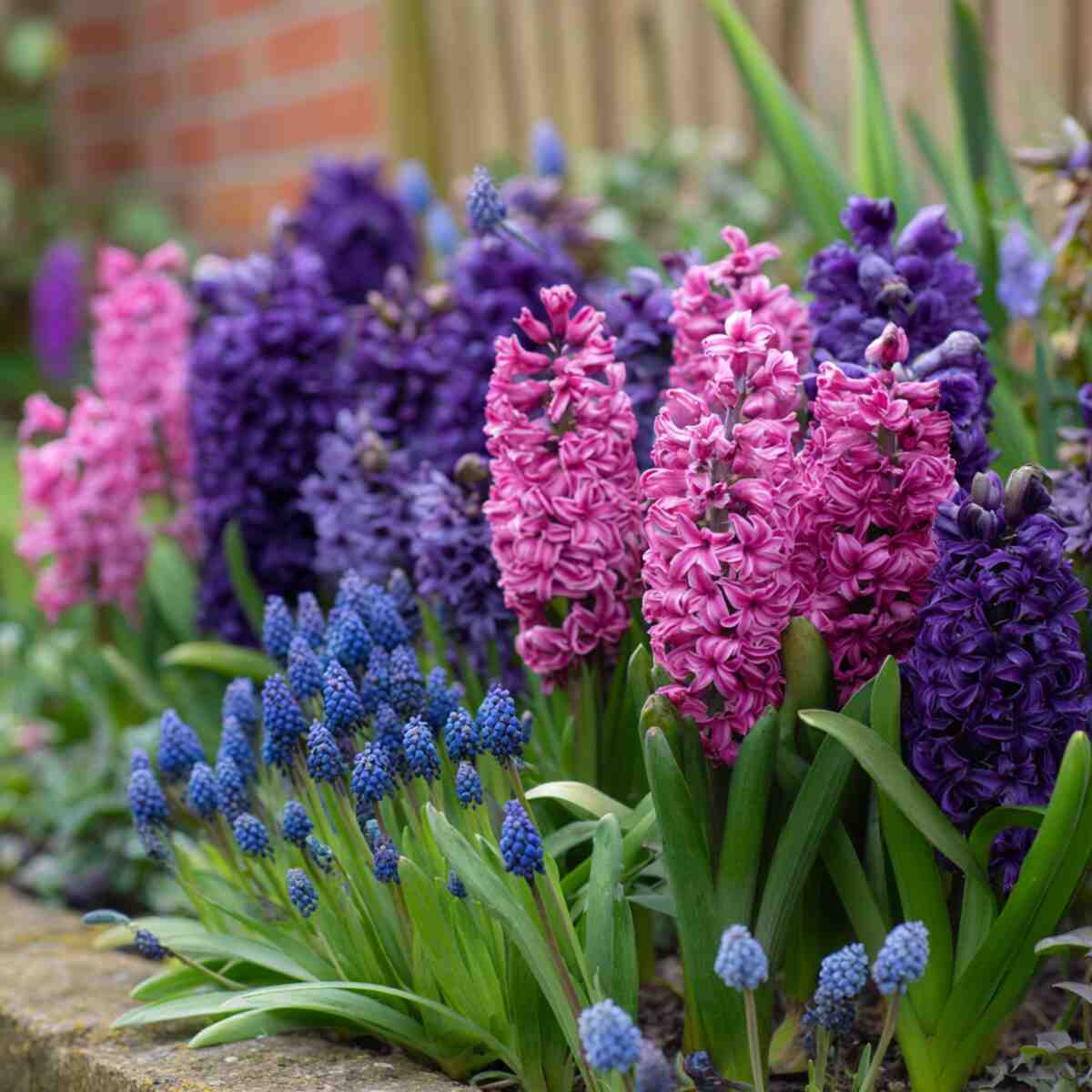 Pairing large hyacinths with smaller grape hyacinths creates a fragrant and visually textured display that highlights the power of Bulb Layering in Flower Beds Ideas.