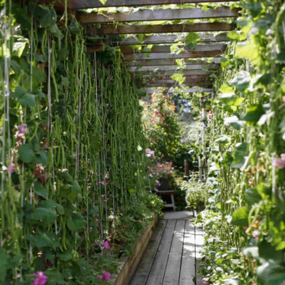 A pergola can be transformed into a lush green canopy when beans climb over it.