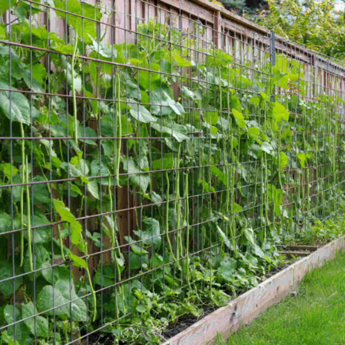 A simple wire mesh fence acts as a sturdy climbing surface for beans. As one of the stronger Climbing Beans Vertical Growing Garden Ideas, it allows plants to attach easily and grow upwards without much maintenance.