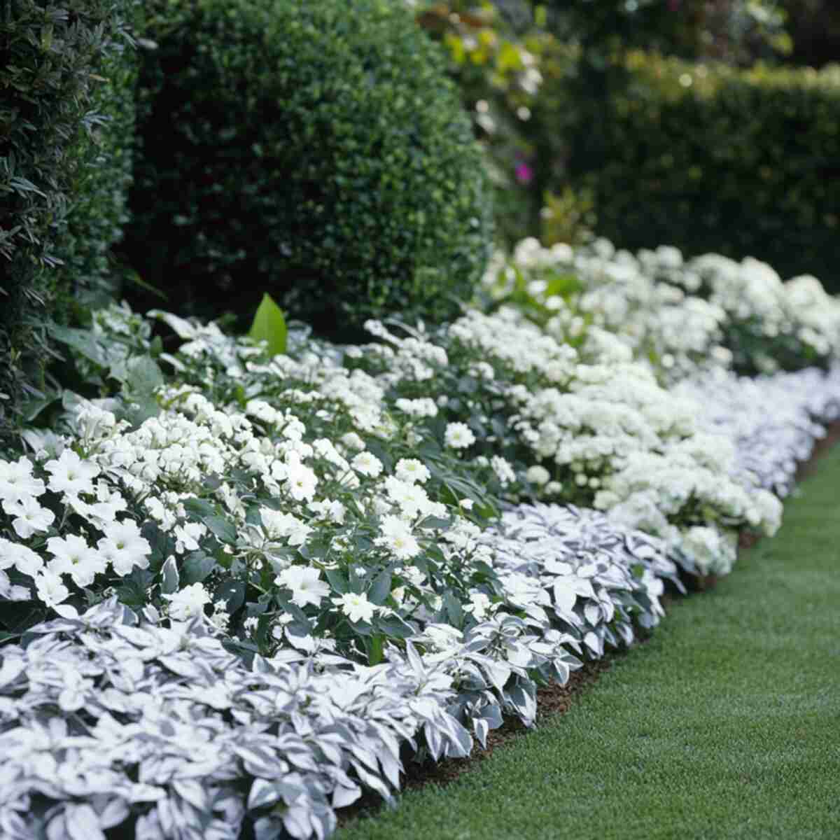 A monochromatic white flower bed offers purity, simplicity, and timeless elegance.