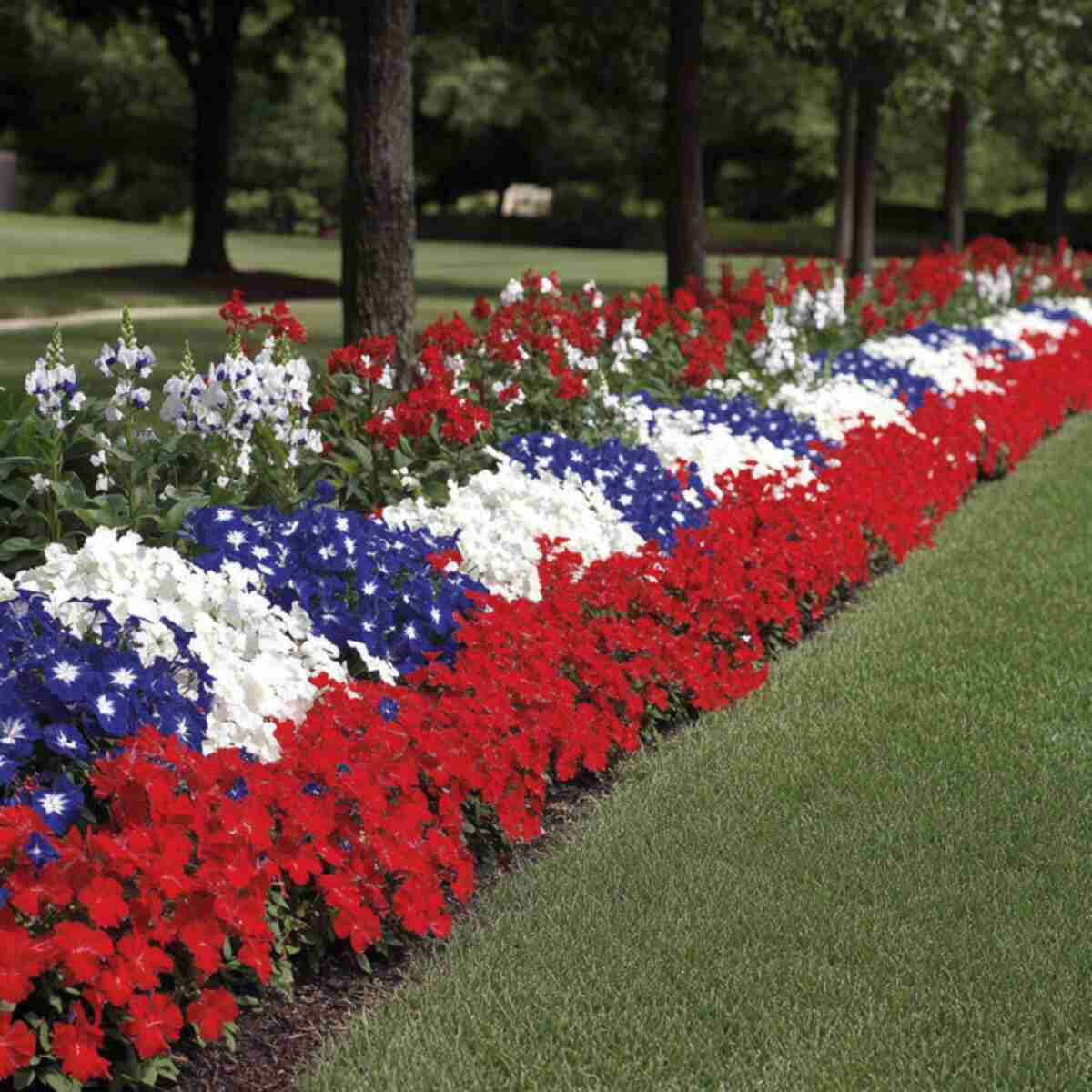 A red, white, and blue flower bed creates a bold and festive look, especially for themed gardens.