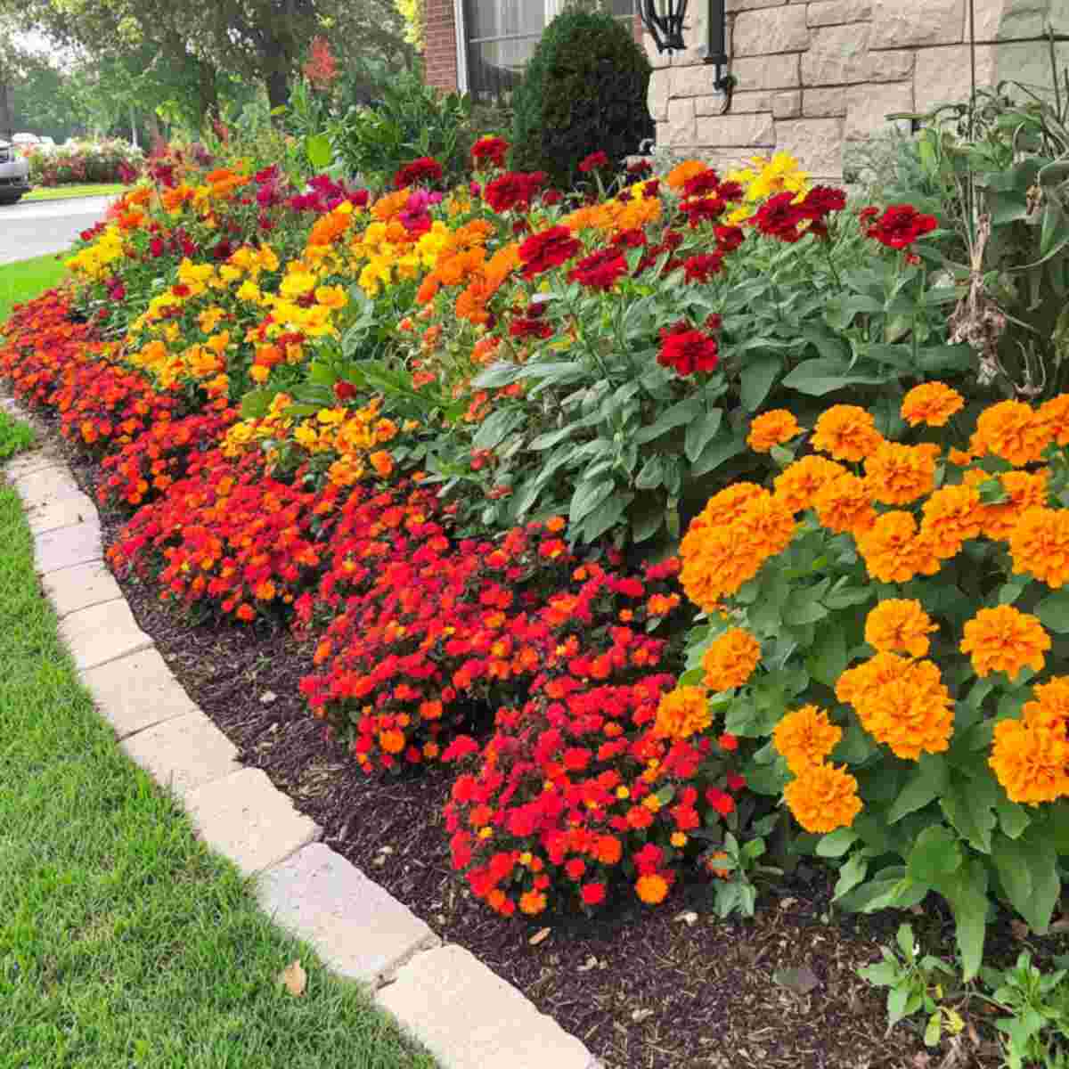 This high-energy combination demonstrates the power of Color-Coordinated Flower Beds Garden Ideas to make a strong visual statement. It’s a perfect choice for gardeners who enjoy bold, exotic flair.