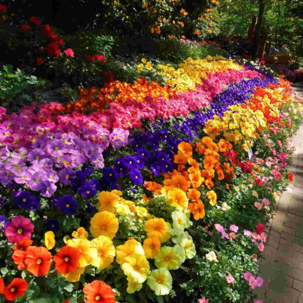 Even with many colors, this concept aligns with Color-Coordinated Flower Beds Garden Ideas by emphasizing structured flow rather than randomness. It creates an energetic, joyful display that appeals to color lovers.