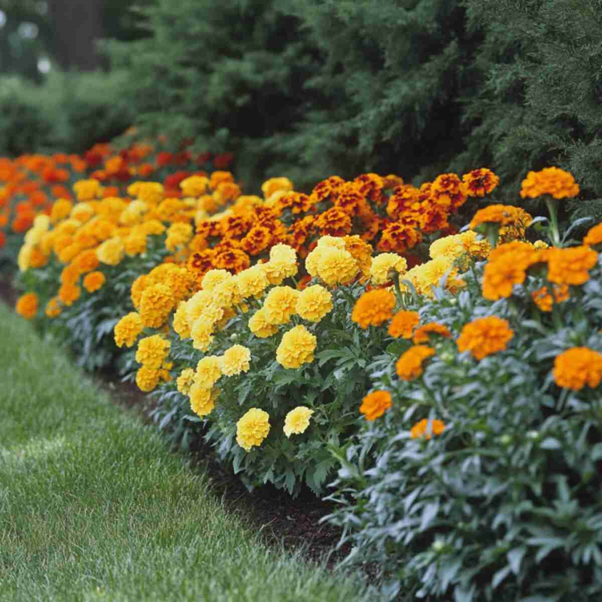 Yellow and orange marigolds create a lively, cheerful garden bed filled with warmth. Using these related hues demonstrates how Color-Coordinated Flower Beds Garden Ideas can bring energy and brightness to outdoor spaces.