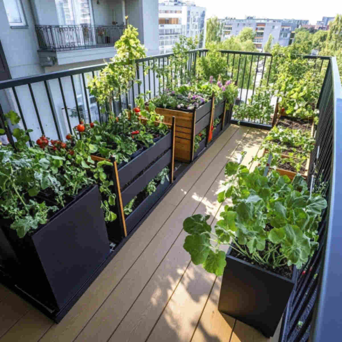Balcony railing planters help you grow vegetables without taking up any floor space, making them ideal for Compact Urban Vegetable Patch Garden Ideas.