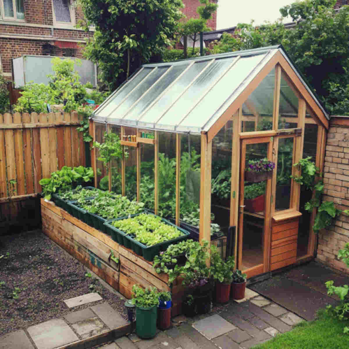 A compact greenhouse gives you controlled growing conditions, which boosts success in Compact Urban Vegetable Patch Garden Ideas.