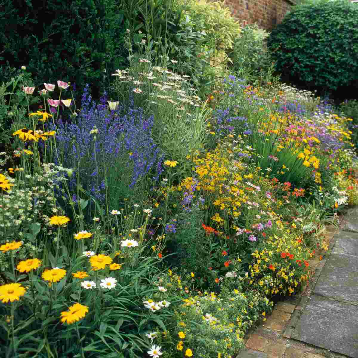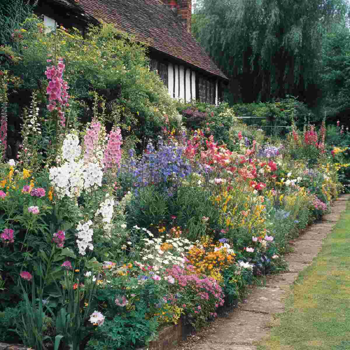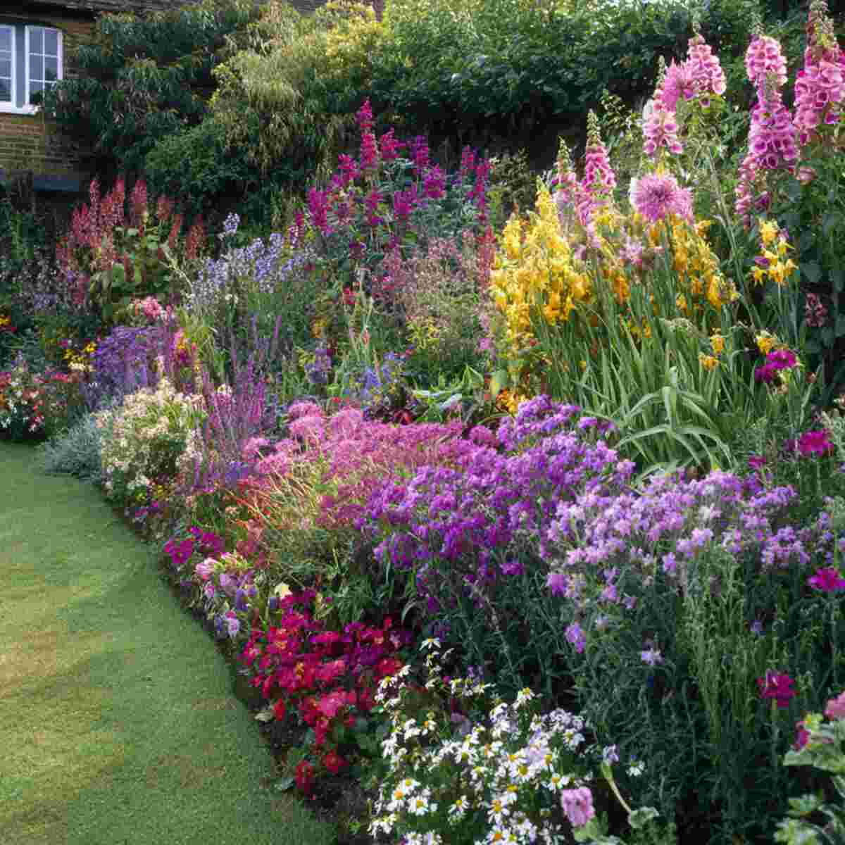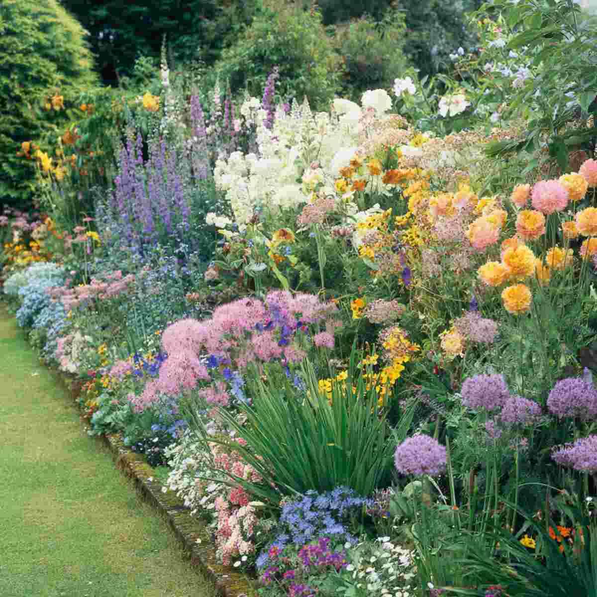 A cottage garden border is full of charming, mixed flowers designed to be informal but productive.