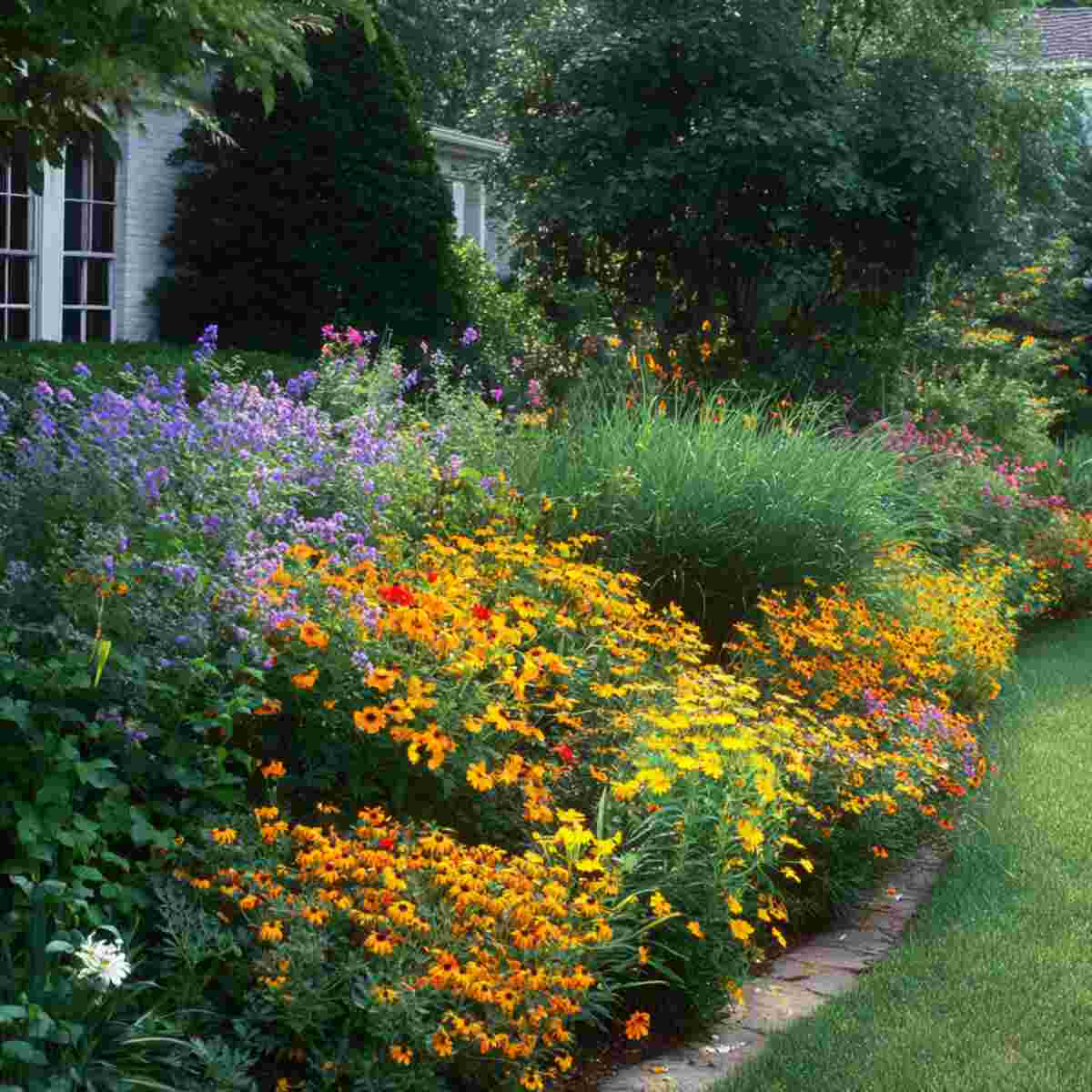 Combining annuals and perennials in one border is one of the most flexible Cutting Borders Flower Garden Ideas. Annuals give vibrant color for one season, while perennials offer long-term structure and repeated blooms.