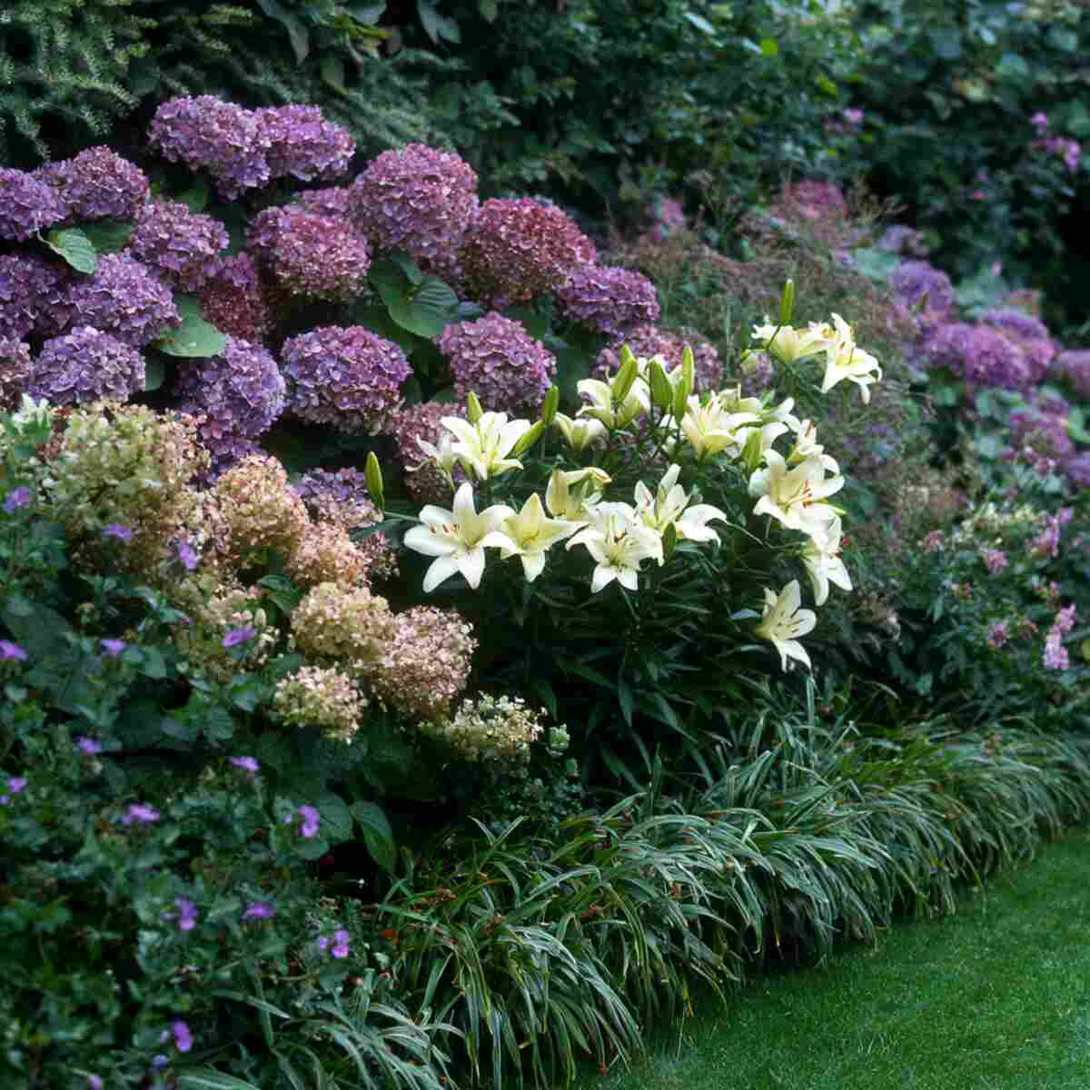 Hydrangeas and lilies provide dramatic blooms you can count on in Cutting Borders Flower Garden Ideas. Their large flowers and showy appearance make them great for arranging.