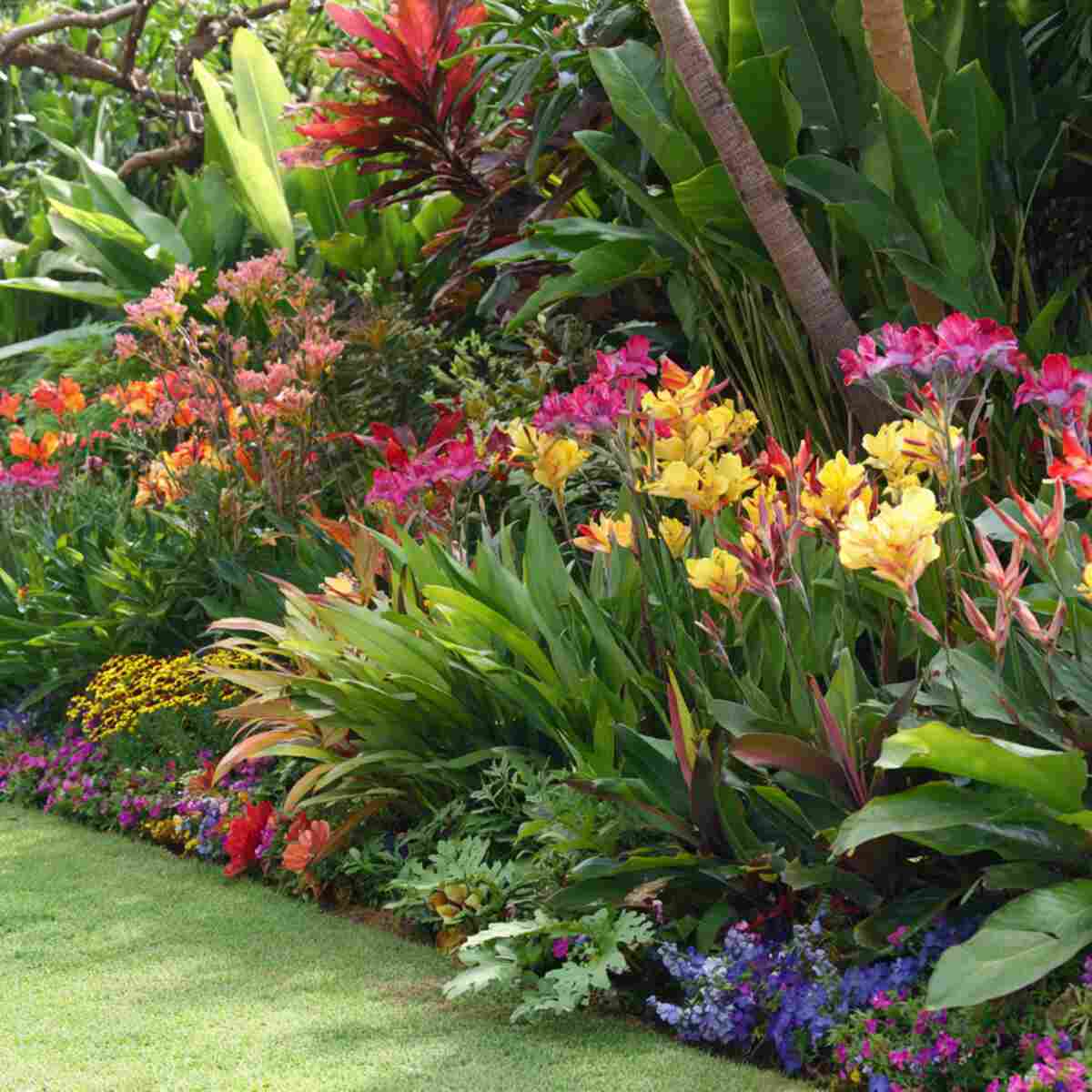 A tropical border brings bold shapes and exotic textures to Cutting Borders Flower Garden Ideas.