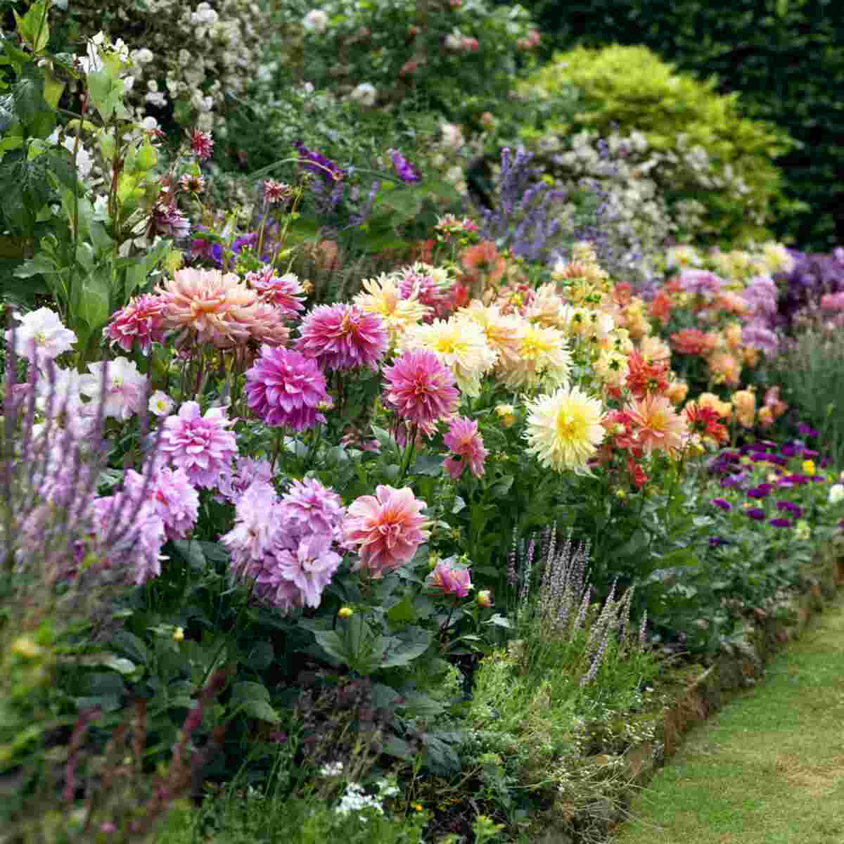 Dahlias are prized for their stunning size, color variations, and long vase life, making them a centerpiece in Cutting Borders Flower Garden Ideas.