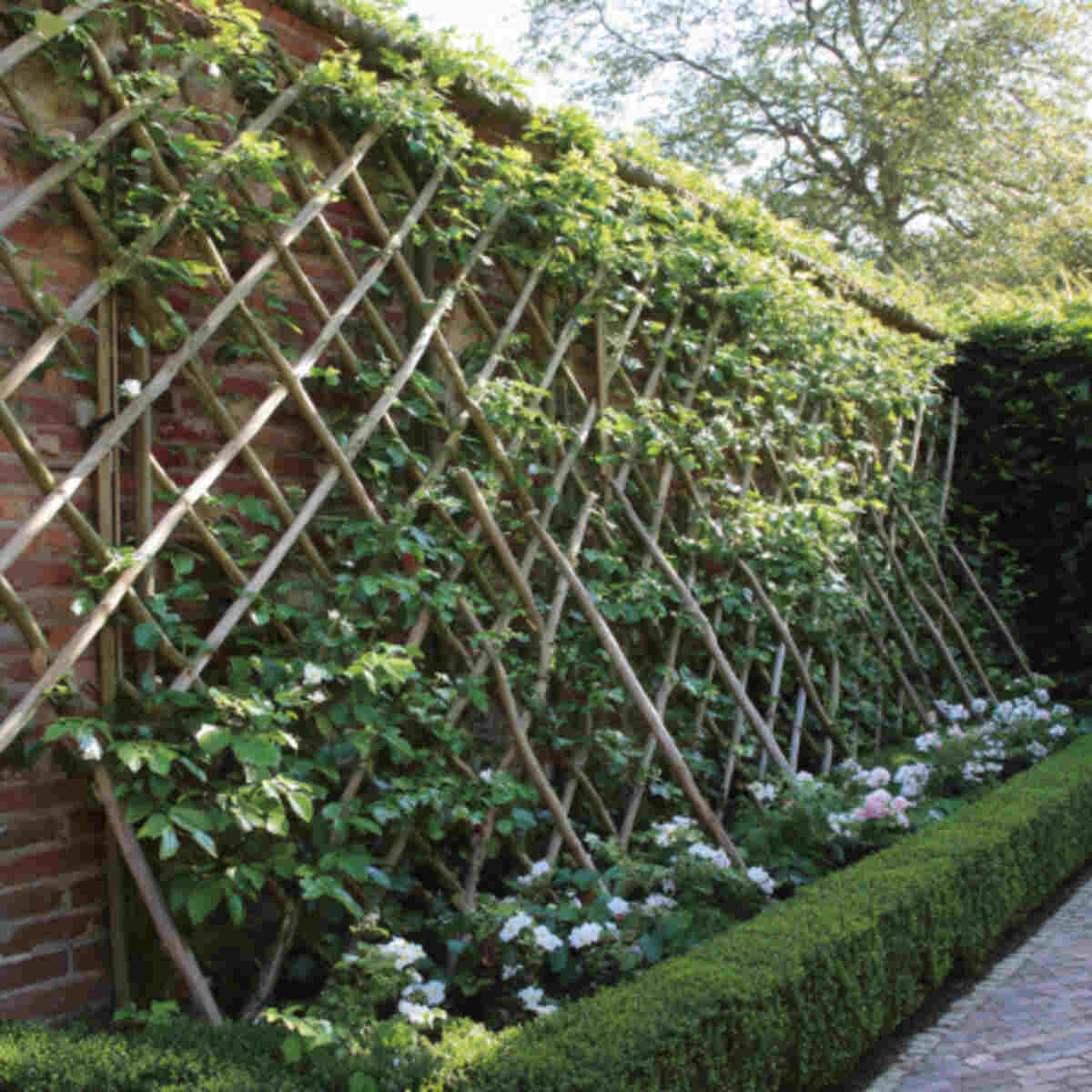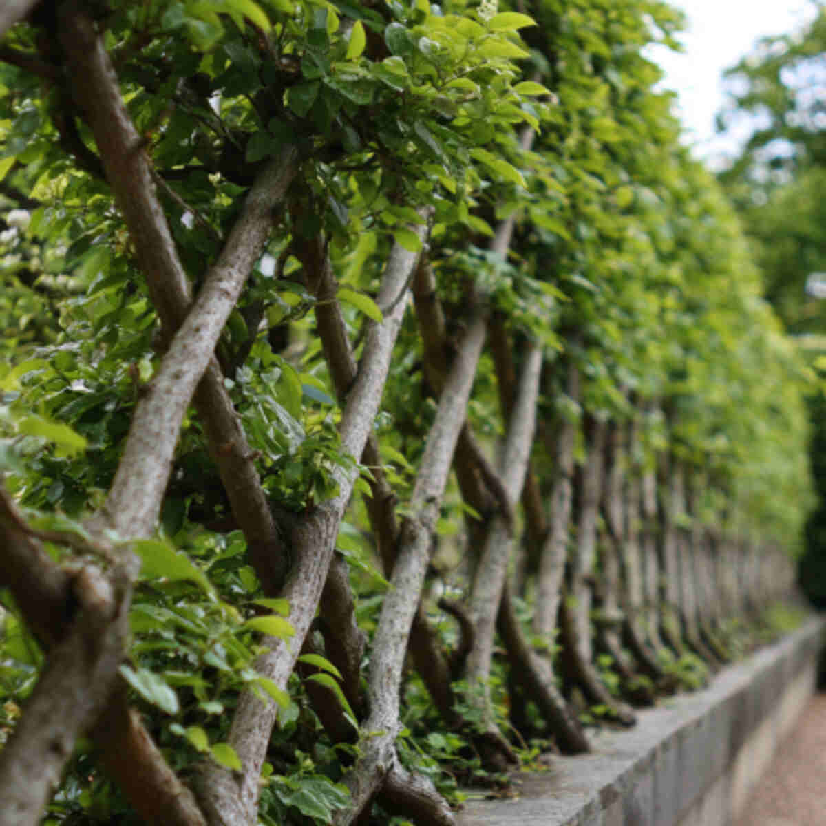 The Belgian fence is an intricate design where branches crisscross to form diamond shapes.