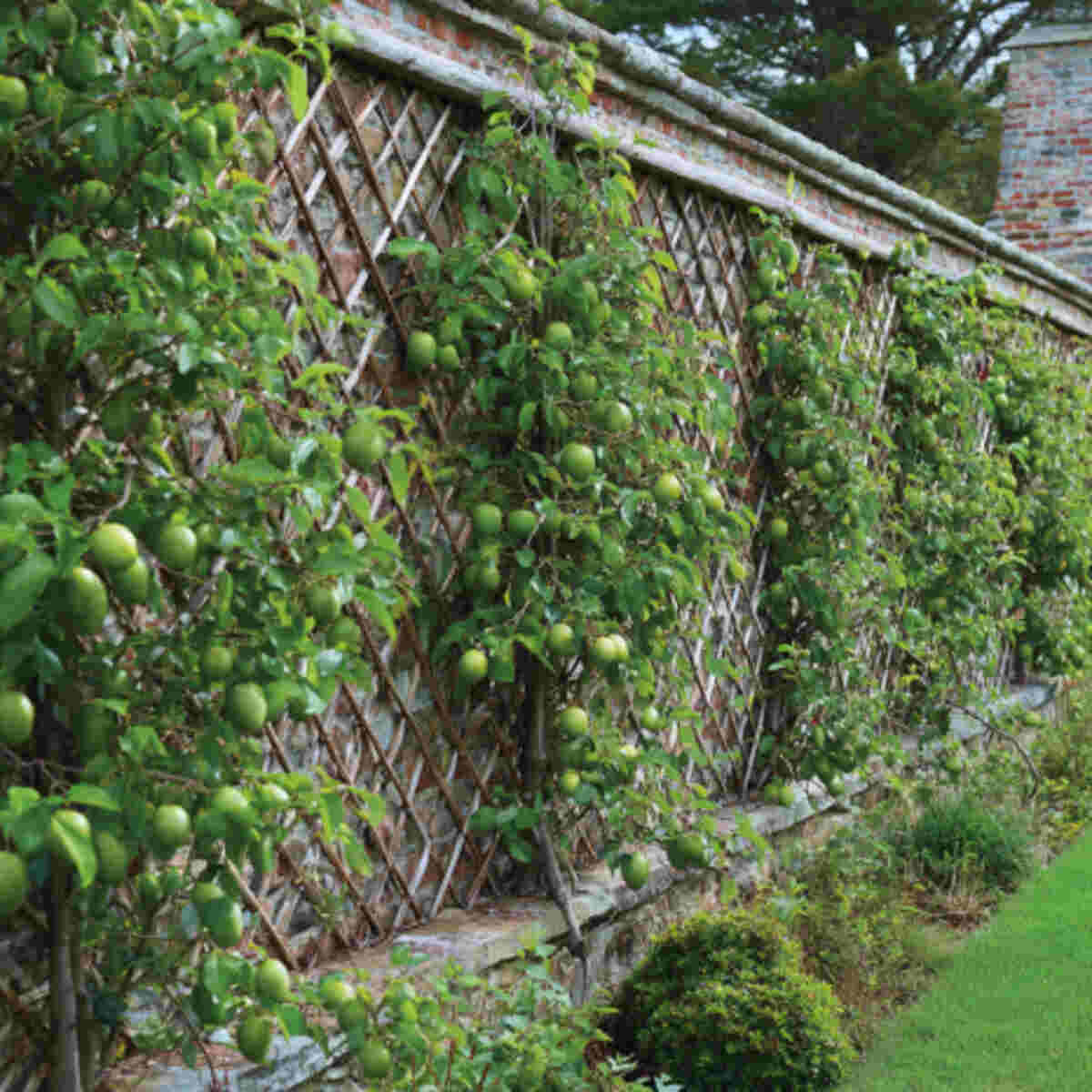 Step-over espalier keeps branches trained very low, just above the ground, usually forming a border.