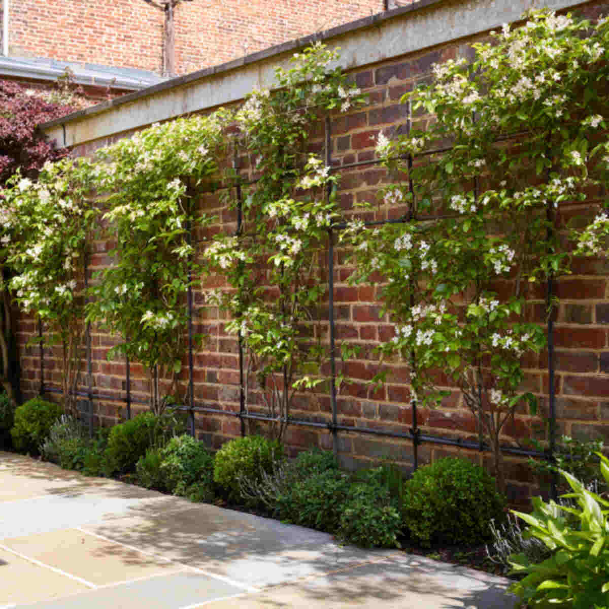 Free-form espalier allows branches to grow with artistic flexibility while still being trained flat.