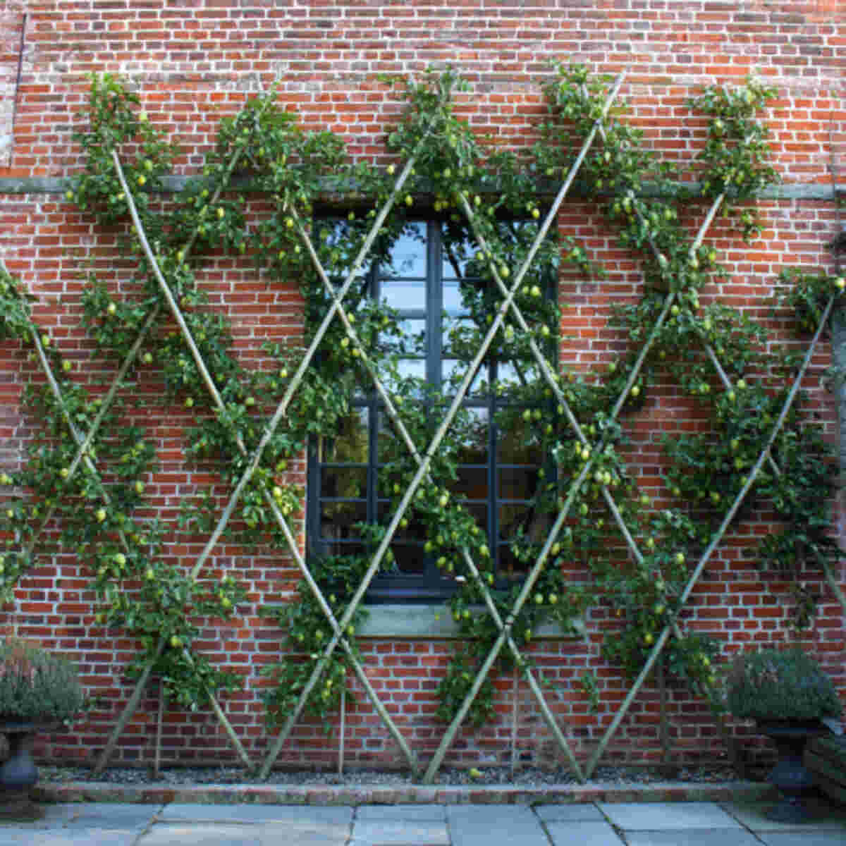 The diamond pattern espalier weaves branches into diamond shapes across a support.