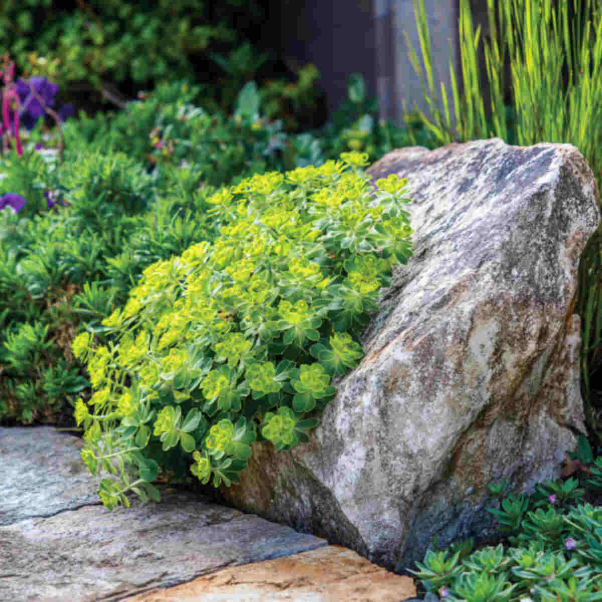Euphorbia offers unusual green blossoms that work well in rock gardens.