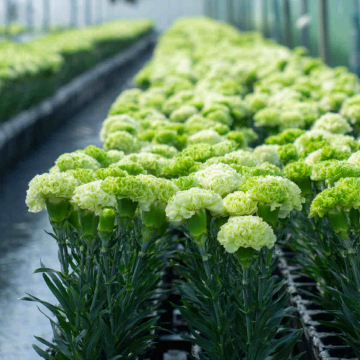 13. Green Carnation Flower Rows