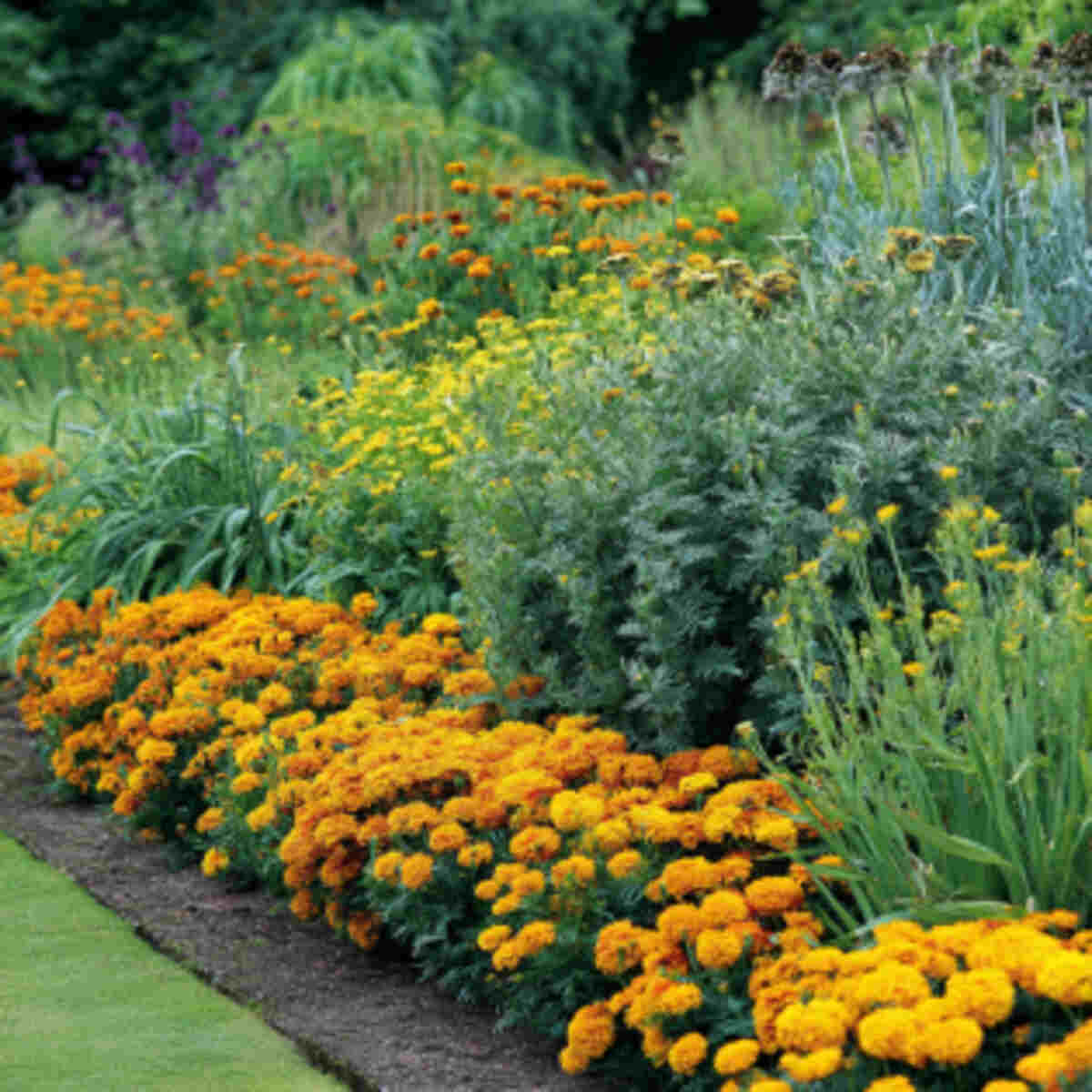 Green marigolds work wonderfully as borders around larger garden beds.
