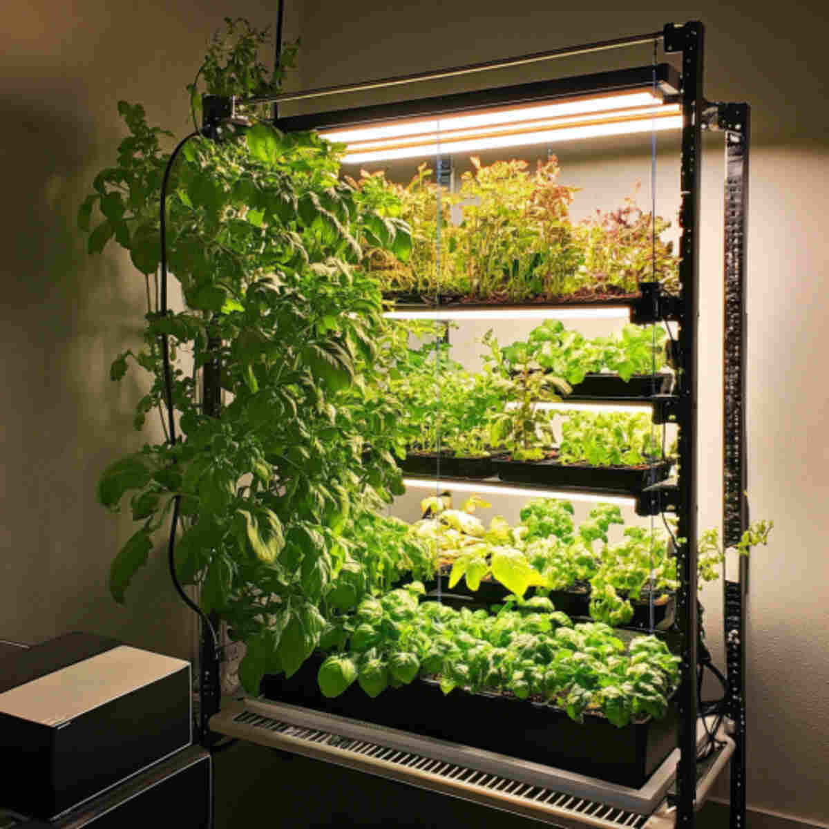 A hydroponic rack lets you grow plants without soil while keeping nutrient levels steady year-round.