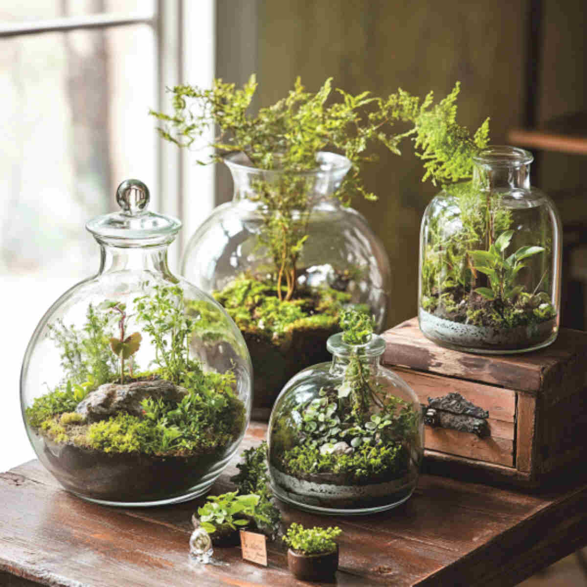 Terrariums offer a self-contained ecosystem that stays stable throughout the year. This makes them ideal for Year-Round Indoor Plant Care Garden Ideas, especially for humidity-loving plants.