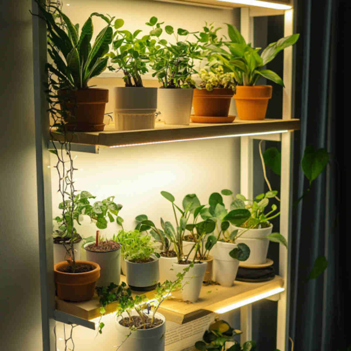 Grow lights support plants during darker months when natural sunlight is limited. This makes them essential for Year-Round Indoor Plant Care Garden Ideas, as they help maintain growth even in winter or low-light rooms.