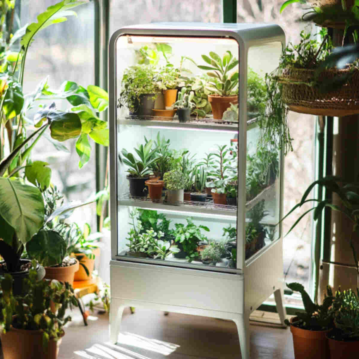 A mini indoor greenhouse cabinet controls temperature, humidity, and light for delicate plants. It’s a strong choice for Year-Round Indoor Plant Care Garden Ideas, especially during cold or dry seasons.