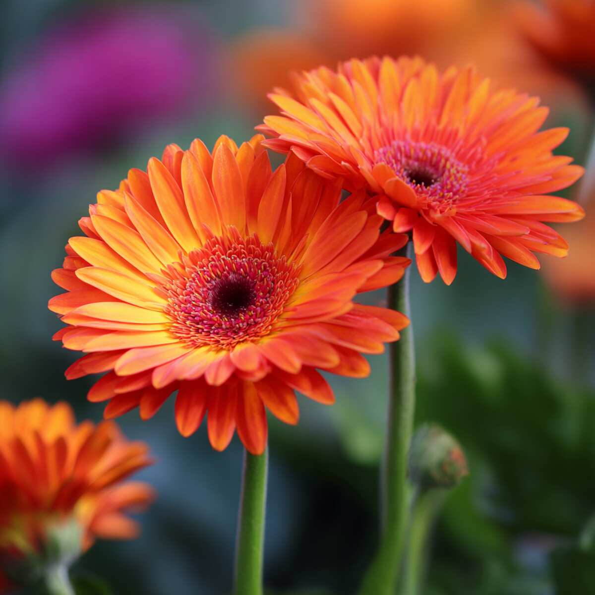 Gerbera daisies are a cheerful addition to Orange Flowers Garden Ideas, offering large, bold faces in vivid orange shades.