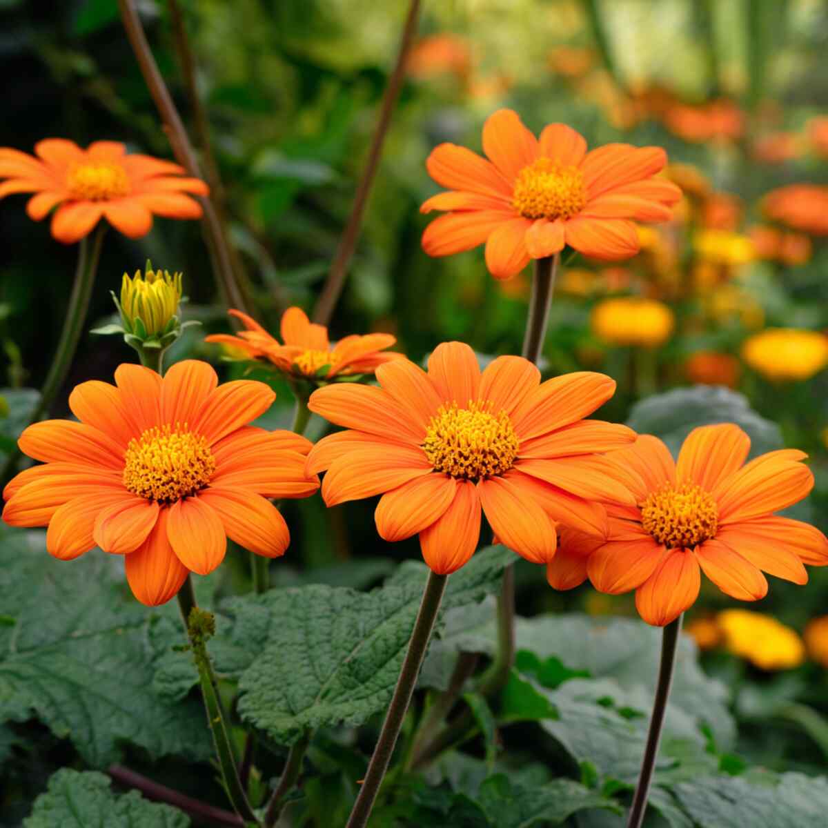 Mexican sunflowers are perfect for Orange Flowers Garden Ideas because of their vibrant, sunflower-like heads in bold orange.