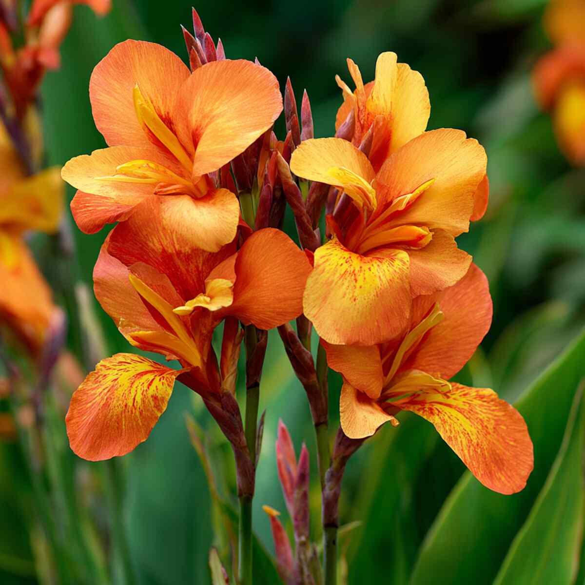 Canna lilies give a lush, tropical vibe to Orange Flowers Garden Ideas with their large leaves and bold orange blooms.