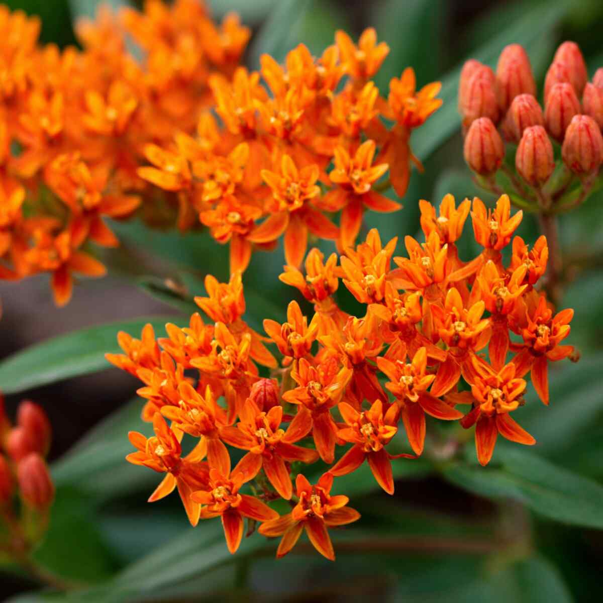 Its clusters of small orange flowers attract butterflies, especially monarchs. This hardy plant thrives in sunny spots and poor soils.