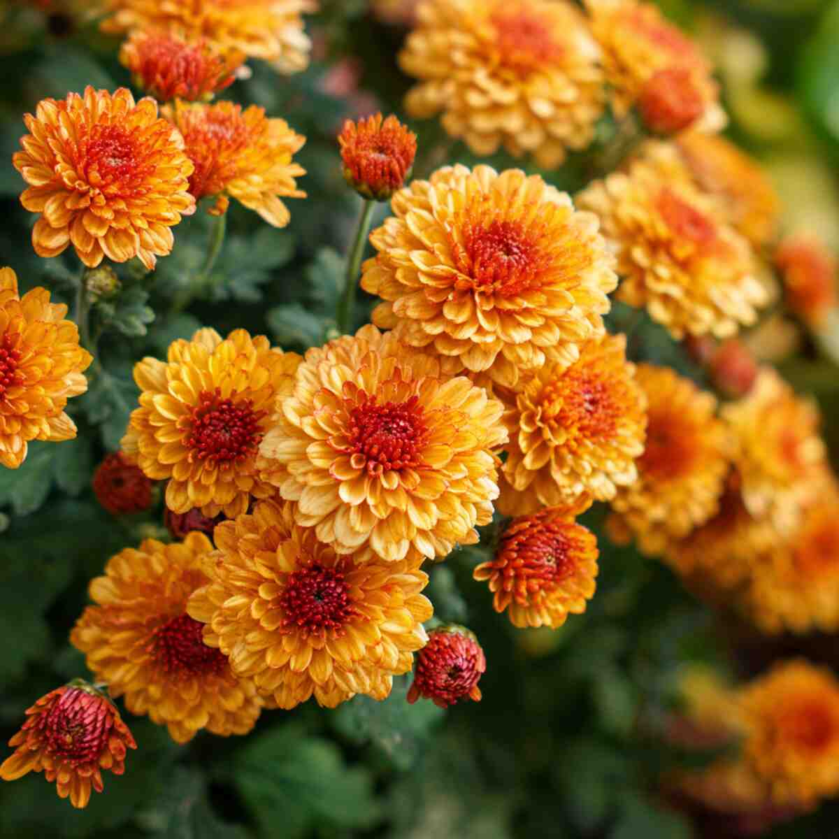 Chrysanthemums bring autumn brilliance to Orange Flowers Garden Ideas with their rich, glowing petals.