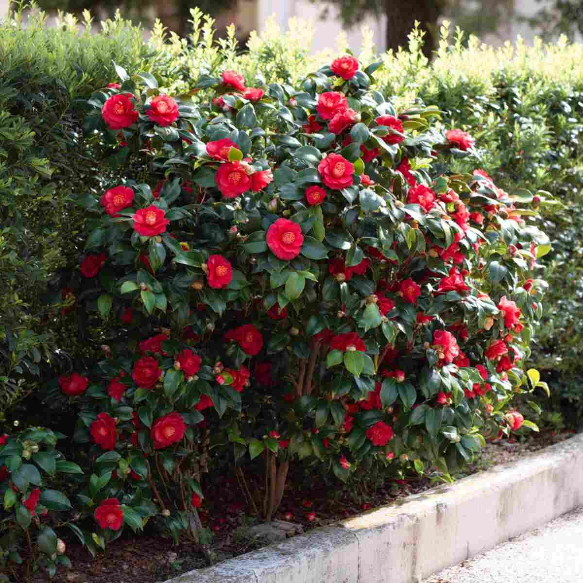 This Red Flowers Garden Idea is especially valuable because it extends color into late winter and early spring. Their glossy green leaves provide year-round interest.