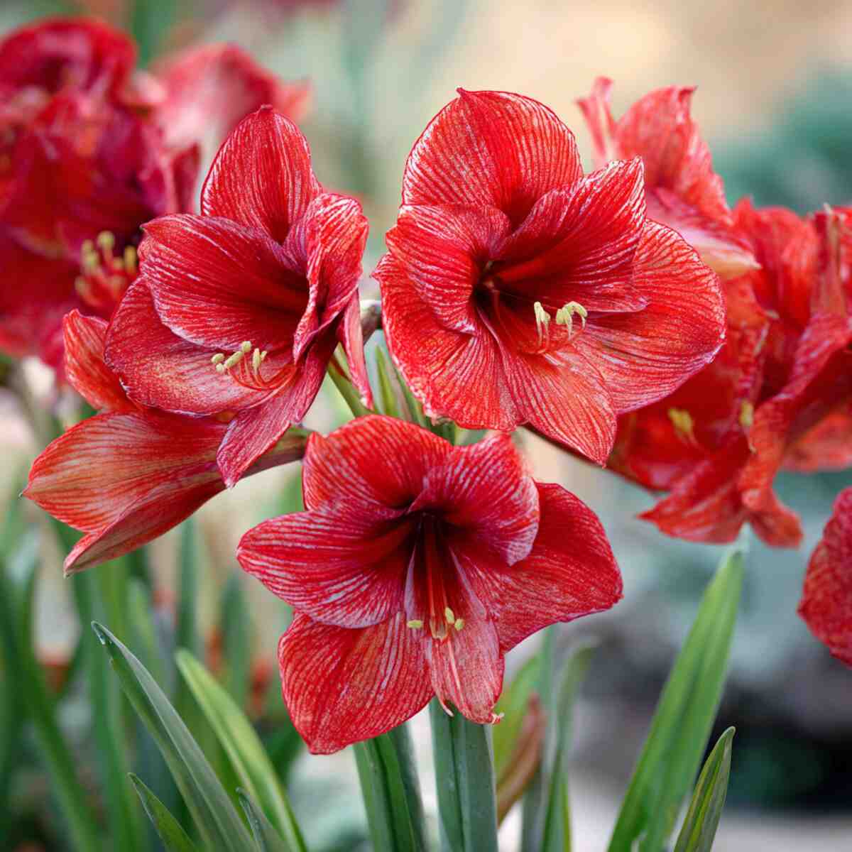 Amaryllis produces striking red blooms in the colder season when color is rare.