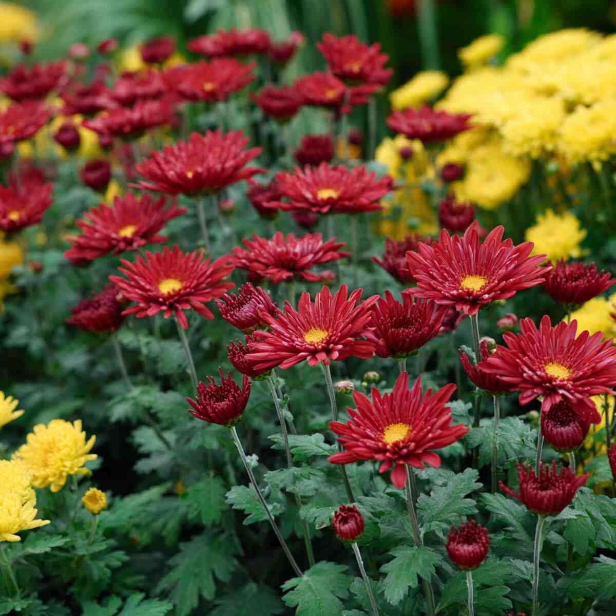 Chrysanthemums in red shades are autumn favorites, adding warmth to fading gardens.