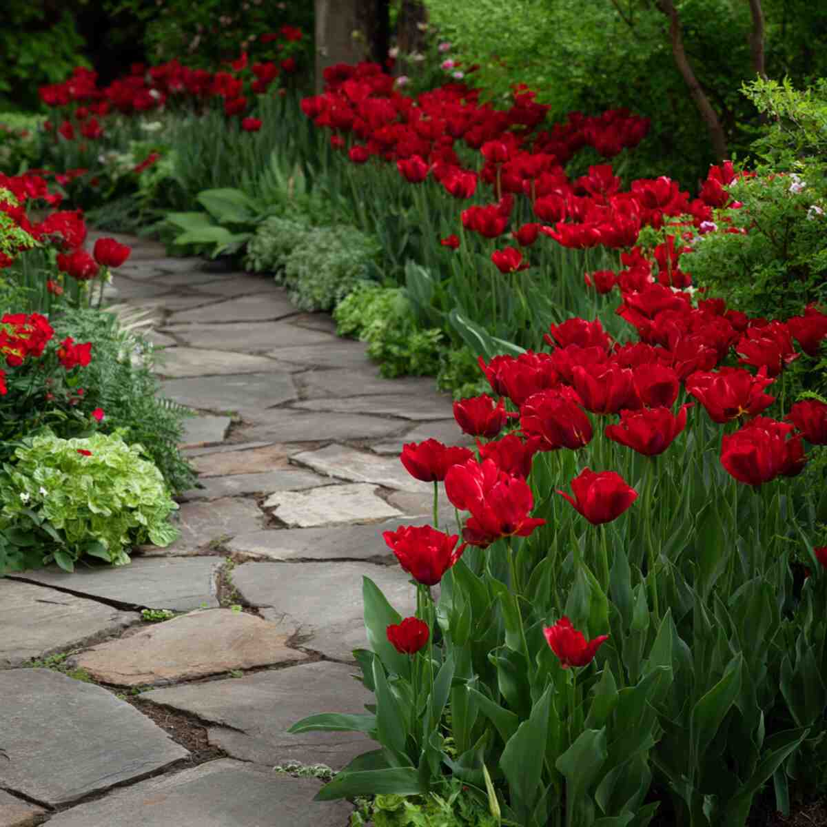 This is a great Red Flowers Garden Idea because tulips add structure while delivering a bold pop of color. They make your garden feel organized yet vibrant during springtime.