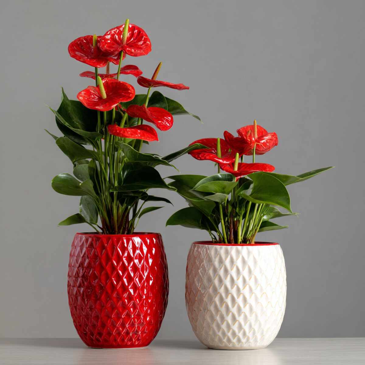 Red anthuriums are perfect for decorative pots indoors or outdoors.
