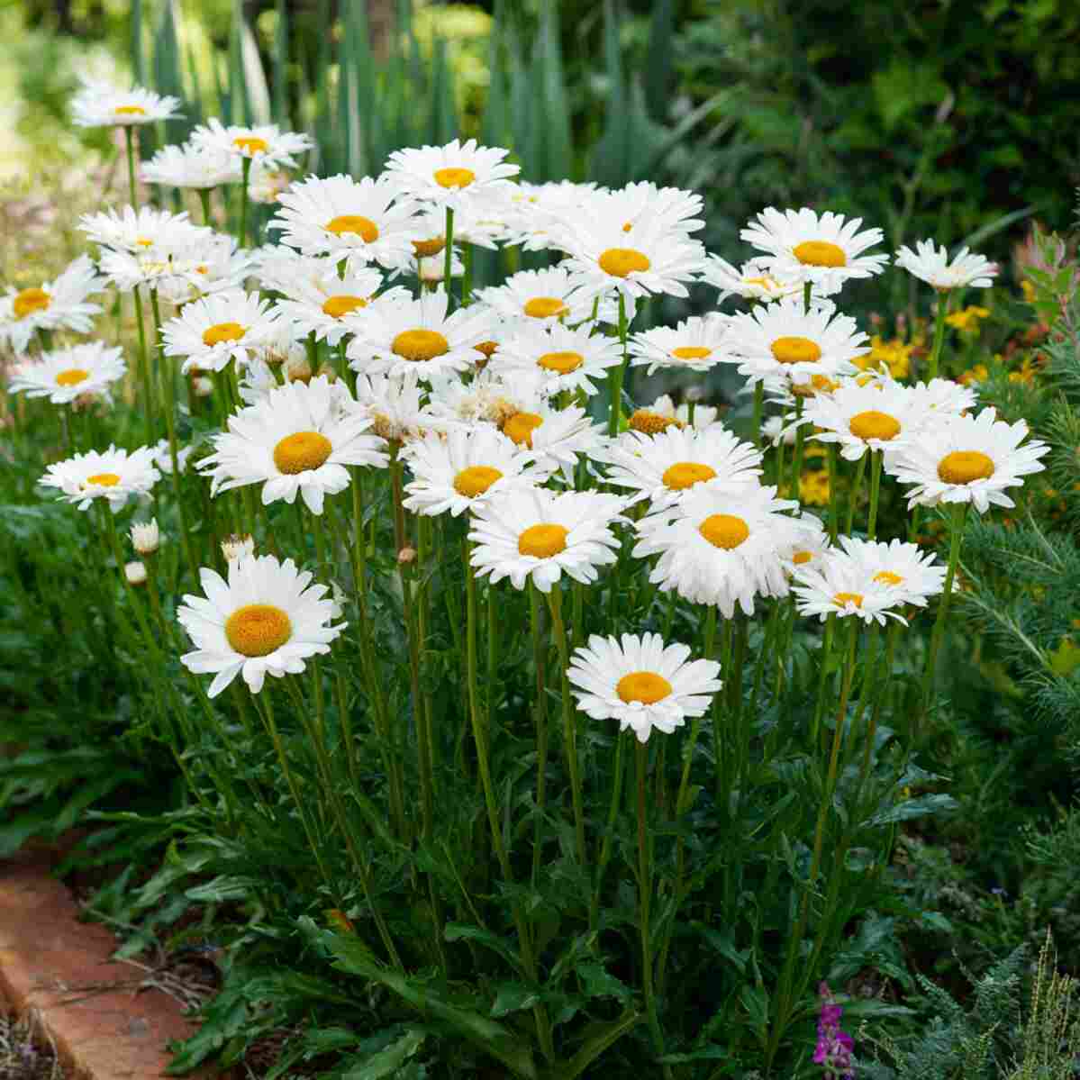 Shasta Daisies are timeless white flowers that spread quickly through self-seeding. They bring a clean, bright look to gardens and bloom for long periods.