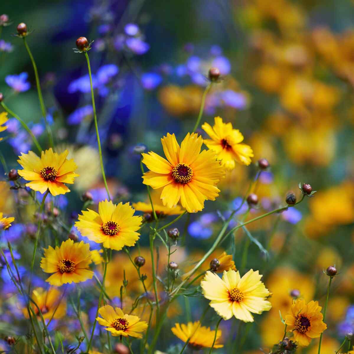 Among Self-Sowing Wildflowers Garden Ideas, Coreopsis is a favorite for creating a golden wave of blooms with minimal care.