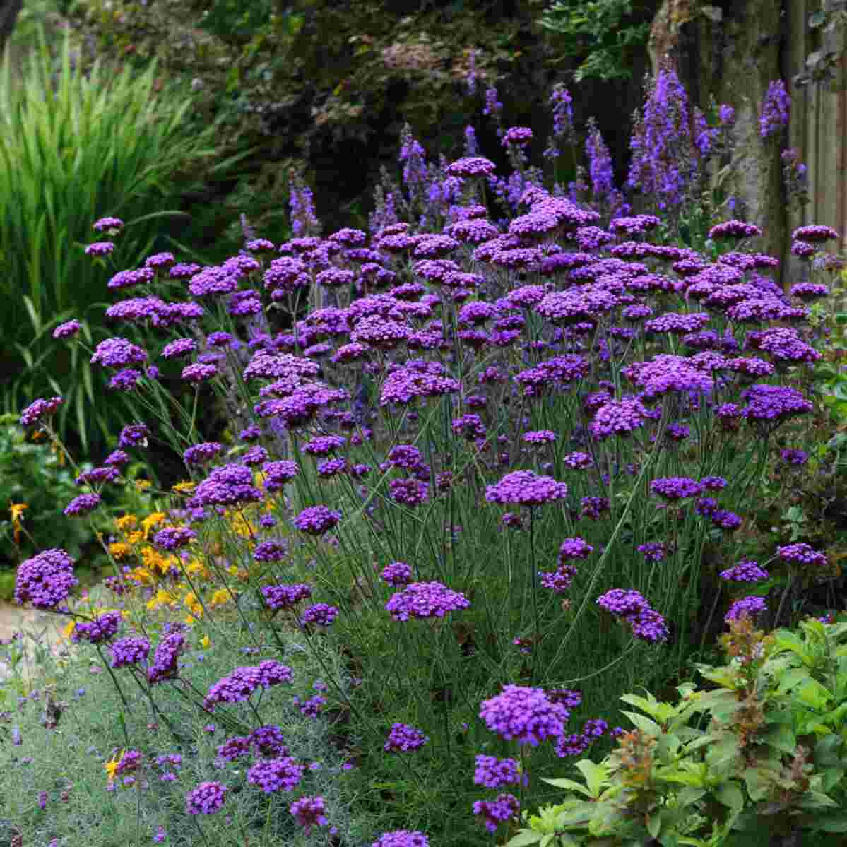 Verbena produces clusters of small purple blooms that attract butterflies and bees. It reseeds easily, ensuring a steady flow of flowers from spring to fall.