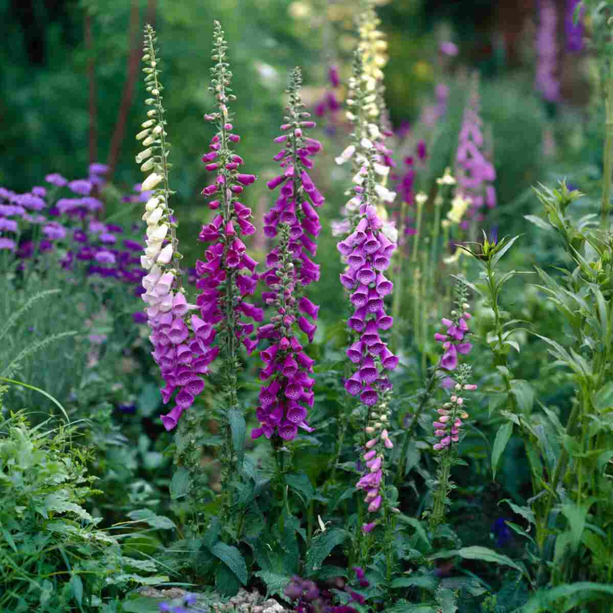 Foxgloves bring dramatic height to gardens with their tall spires of tubular flowers. Once planted, they drop seeds that sprout naturally each year.