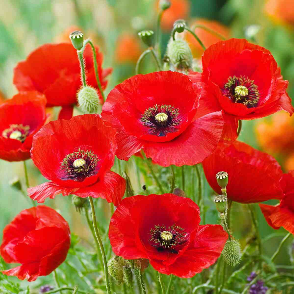 Poppies bring vivid color and elegance to any garden setting. Their seed pods burst open and scatter seeds naturally after flowering.