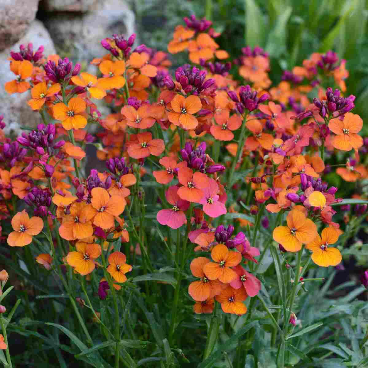 Wallflowers produce fragrant blooms in rich hues of yellow, purple, and orange. Once established, they reseed themselves and return reliably each season.