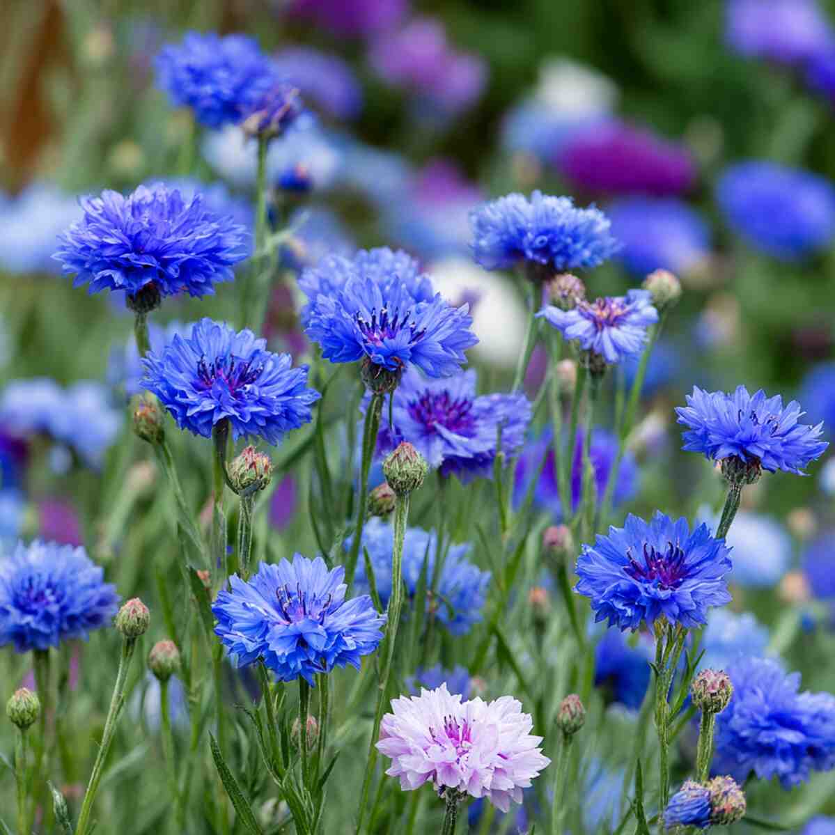 Cornflowers are classic blue blooms that spread naturally through self-seeding. They add an old-fashioned charm to borders and wildflower meadows alike.
